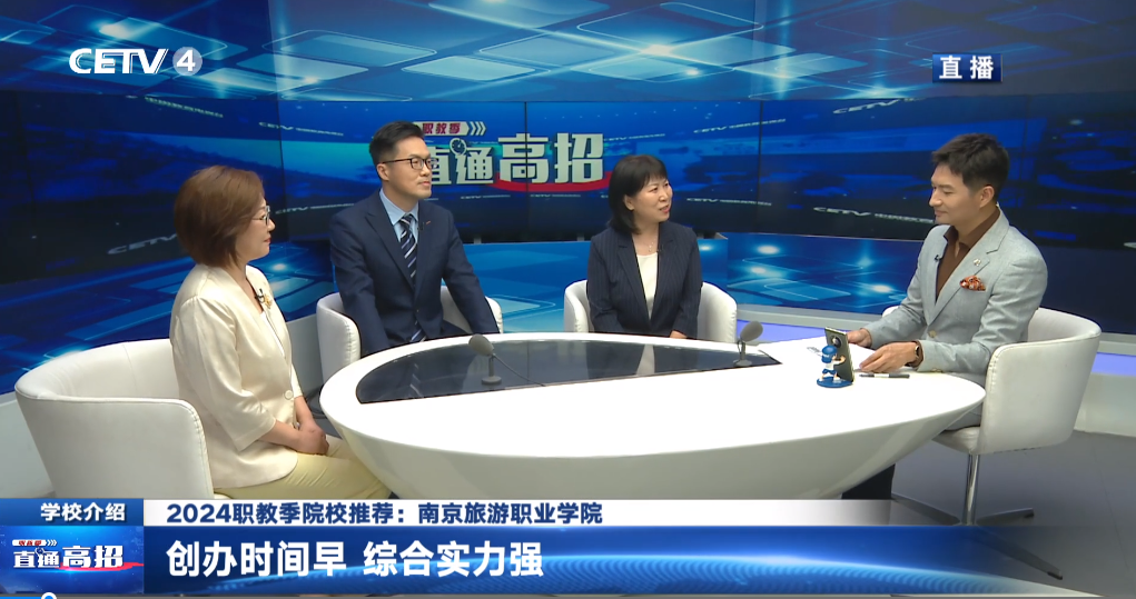 为满足高考咨询需求,让广大考生和家长深入了解职教发展政策和院校特色优势,应中国教育电视台邀请,6月20日下午13:00,学院党委副书记、院长操阳,旅游管理学院院长顾至欣,招生就业处副处长姚颖代表学院做客中华职业教育社与中国教育电视台共同打造的《直通高招·职教季》访谈节目,为考生和家长全面介绍学院优势、特色专业、校企合作等内容,并对今年招生政策等方面问题进行详细解读,通过电视、网络跨屏互动,最大程度满足广大考生和家长高考咨询的要求。