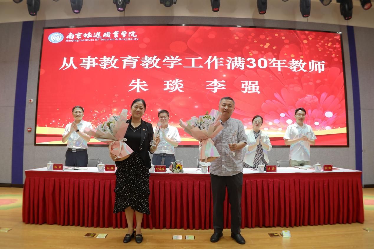 学院领导为从事教育教学工作满30年的教师送上鲜花和纪念奖杯。三十年春风化雨,成就栋梁,他们牢记为党育人、为国育才的初心使命,以德施教、默默耕耘、无私奉献,用爱心、知识、智慧点亮学生心灵。