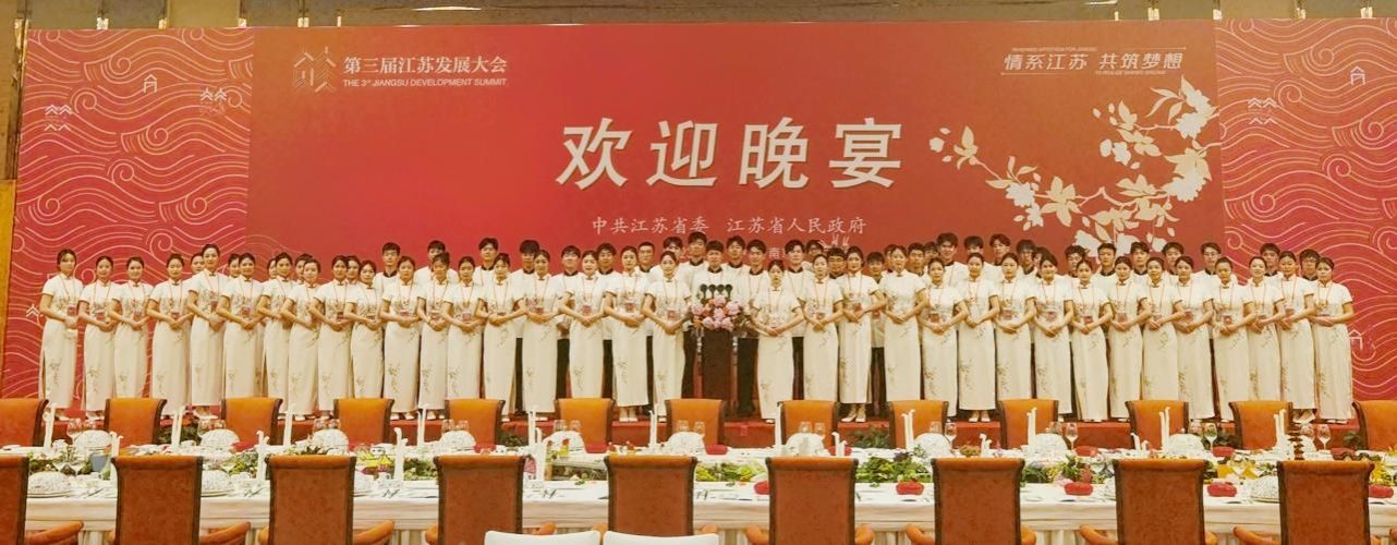 5月20日,主题为“情系江苏,共筑梦想”的第三届江苏发展大会在南京开幕,1300多名来自海内外、省内外的乡贤嘉宾与会。南京旅游职业学院共派出300名学生志愿者,圆满完成宴会餐饮制作、会议接待等志愿服务工作,受到大会组委会和与会嘉宾的高度赞誉。