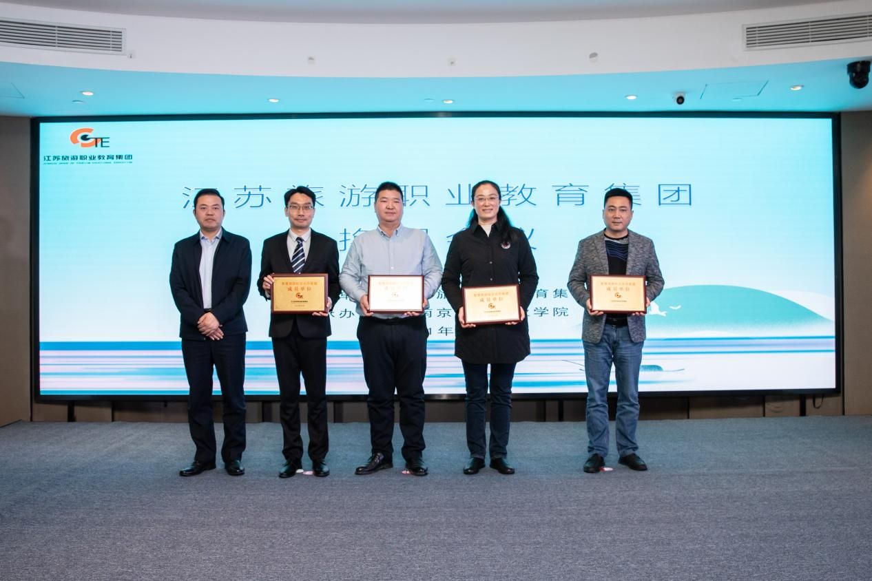 为深化校企深度合作,契合旅游行业数字化、智能化和智慧化发展趋势,集团成立了智慧旅游校企合作联盟。联盟首批成员单位有:南京旅游职业学院、南京汉图信息技术有限公司、南京新中安物联技术股份有限公司、广州问途信息技术有限公司、北京源源点点网络科技有限责任公司。集团副理事长单位代表、江苏旅游职业学院副院长苏爱国教授为智慧旅游校企合作联盟线下参会单位授牌。