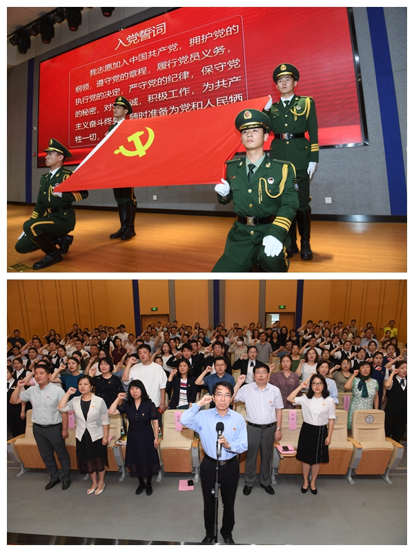 大会在雄壮的国歌声中拉开序幕。在党委书记周春林的带领下,今年新发展预备党员面向党旗庄严宣誓,全体党员重温入党誓词。