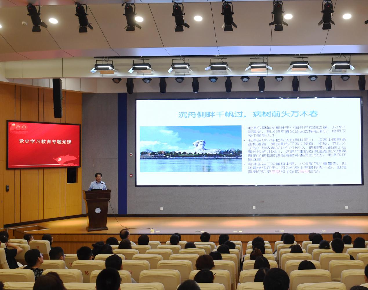 随后,党委书记周春林作了题为《学史增信 做合格党员》的专题党课。周春林表示,7月1日是建党百年的纪念日,集体重温入党誓词,集中表彰一批先进集体和先进个人,学习总书记讲话精神,就是要激励全体党员同志坚定理想信念,牢记使命,不忘初心,在第二个百年里做表率,当示范,开新局,建新功,为党旗争辉,为学校争光。党课上,周春林结合党史学习教育和对习近平总书记关于教育的重要讲话精神的学习,围绕信仰、信念和信心,分享了三点学习体会与全体党员共勉:一是要学史增信,坚定信仰,坚定对马克思主义、共产主义的信仰;二是要学史增信,服务人民,树牢为人民、为师生服务的信念;三是要学史增信,育人育才,增强为党育人、为国育才的信心。