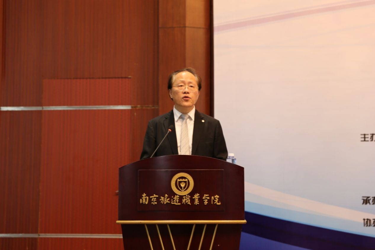 王海平在开赛式上致欢迎辞。他代表江苏省旅游局及南京旅游职业学院向出席大赛的领导和来宾表示热烈的欢迎,向全体裁判员、参赛选手、指导老师致以诚挚的问候。在简要介绍了近年来江苏旅游业态发展和学校旅游人才培养的相关情况后,王海平强调指出,本次全国职业院校技能大赛高职组导游服务赛项交由全国旅游行指委和我校协办,充分体现了教育部、文化和旅游部对江苏旅游职业教育的重视与肯定,也体现了省教育厅对我校各项工作的关心和支持。学校作为东道主,将竭尽全力、高质量做好服务保障工作。他衷心希望,通过此次大赛,与各兄弟院校之间加强交流,相互学习,增进友谊,共同提高。最后,他预祝参赛选手取得理想成绩,预祝本次大赛取得圆满成功。