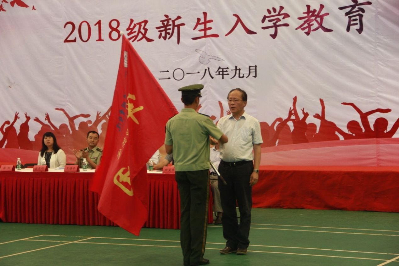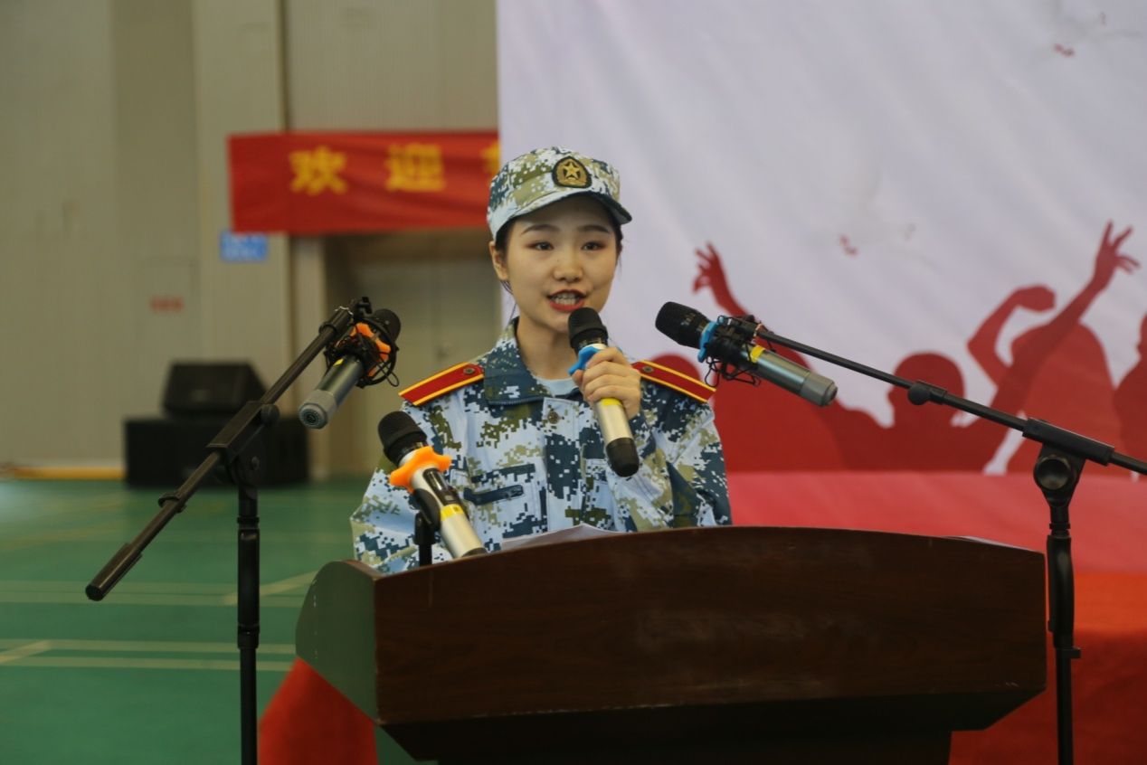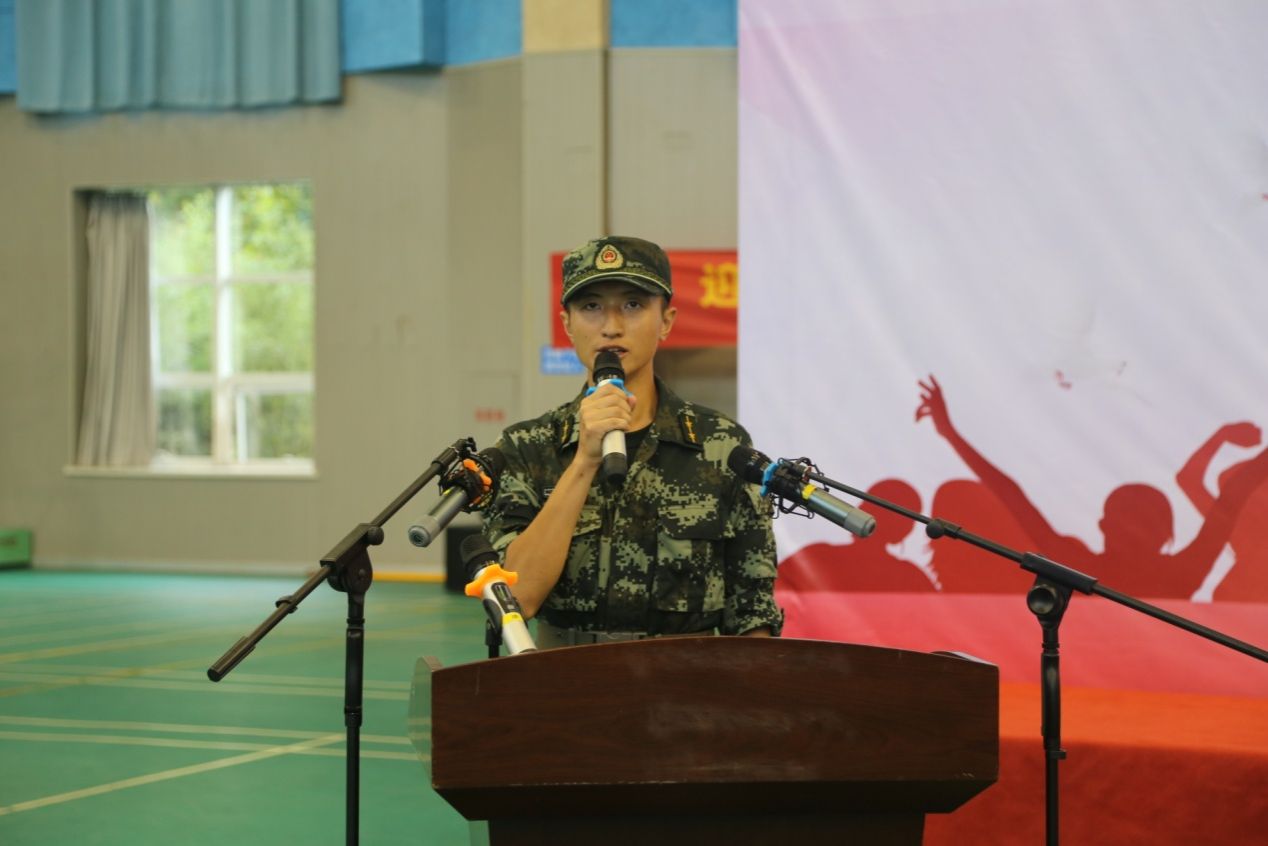 2018级新生代表——旅游管理学院183旅管中高职2班林天瑶在发言中表示在军训中将严格自律、刻苦训练,努力完成军训任务。
