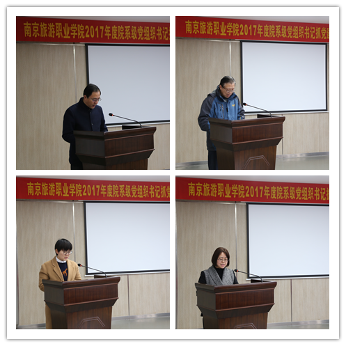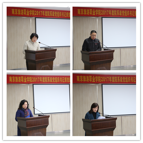 述职会上,酒店管理学院党总支书记匡家庆、烹饪与营养学院党总支书记胡国勤、旅游管理学院党总支副书记鲁晨阳、国际旅游系党总支书记樊平、人文艺术系党总支书记狄苏、基础部党总支副书记朱丽、机关党总支书记王德成、培训继教院党总支书记李明分别以深入学习贯彻党的十九大精神为主线,重点围绕贯彻全国高校思想政治工作会议精神,以及落实上级和学校关于党建工作重点任务部署,履行意识形态工作、基层党建工作、党风廉政建设和党内监督工作及加强和改进工作的思路措施等方面进行了现场述职。紧接着,按照会议议程,黄斌、操阳和田寅生三位校领导就8位总支书记的述职情况进行了中肯的评议,三位领导不谈成绩只讲不足,使大家对如何进行述职,如何开展好党建工作,如何将党建工作落到实处有了更清晰的认识。