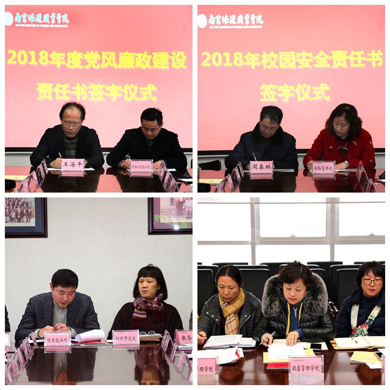 会上,党委书记王海平、校长周春林分别与部门负责人代表签订了《2018年度党风廉政建设责任书》和《2018年度校园安全责任书》。