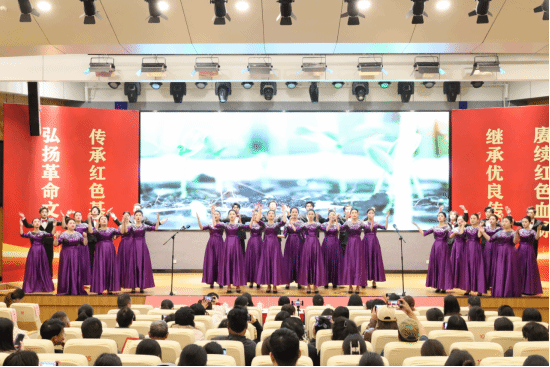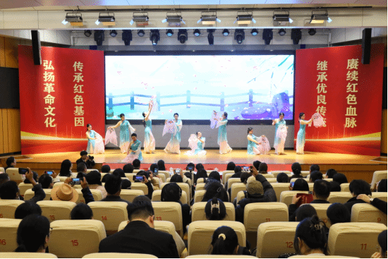 “小故事”讲述“大道理”“小切口”阐释“大主题”,宣讲会上一个个立体而丰满的红色故事直抵人心。淮海战役烈士纪念塔管理中心的魏天梅讲述了淮海战役口述史的记录者,在寻访路上用文字记录下一个又一个战士牺牲的故事;淮安市广播电视台的张又新讲述了一位从航母女舵手转变为乡村振兴掌舵人的动人故事;无锡广播电视集团的杨淑悦讲述了一群科研工作者为大国重器“奋斗者号”逐梦深蓝而拼搏的经历;旅游外语学院学生韩冰则讲述了合作联社里的“父亲”坚韧不拔、无私奉献的故事……这些故事或震撼心灵,或温暖感人,或激励斗志,让在场观众在聆听中感受到了信仰的力量与奋斗的价值。宣讲会上,学院大学生艺术团的同学们为大家奉上了精彩的开场舞蹈和合唱节目。