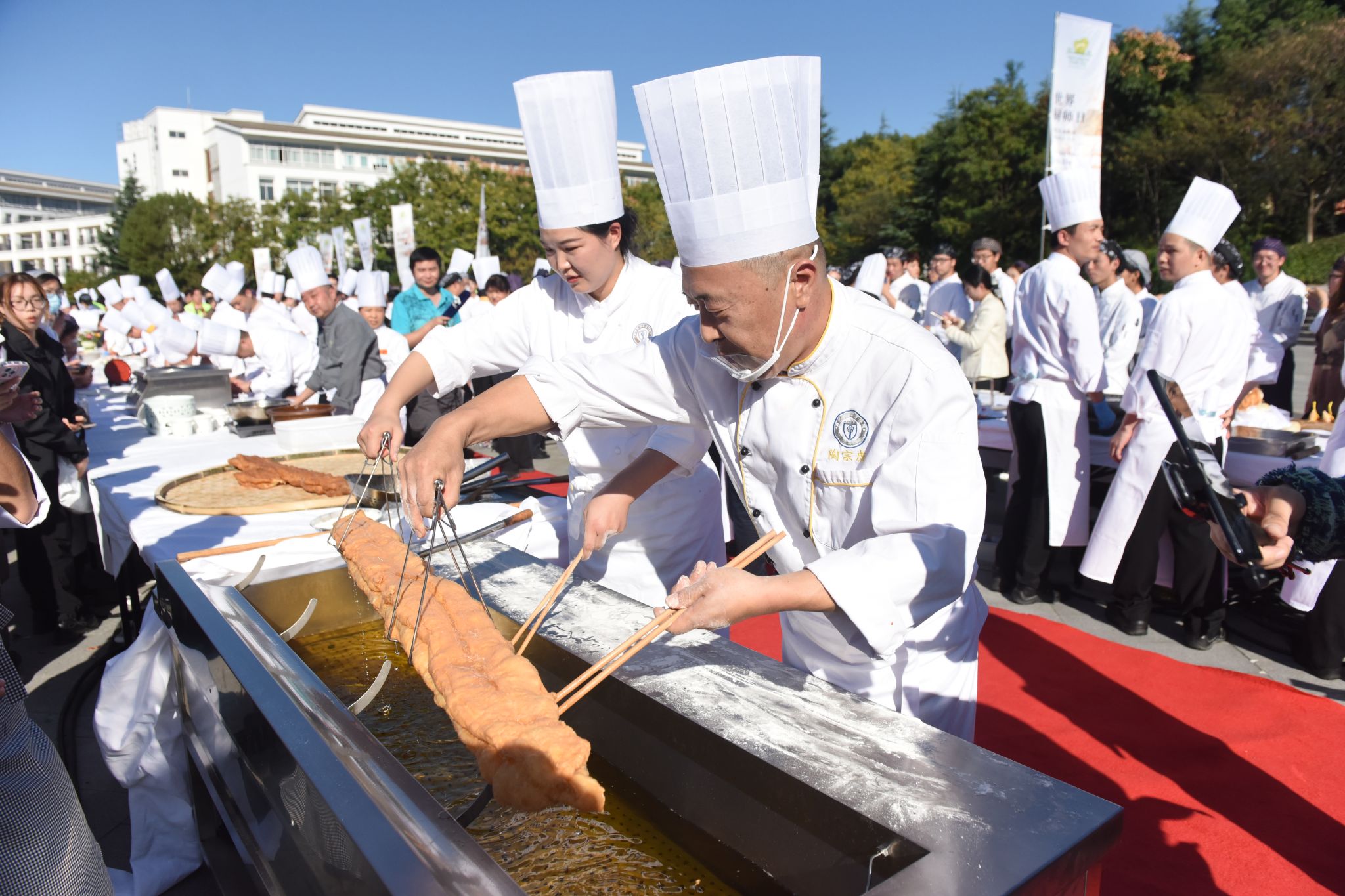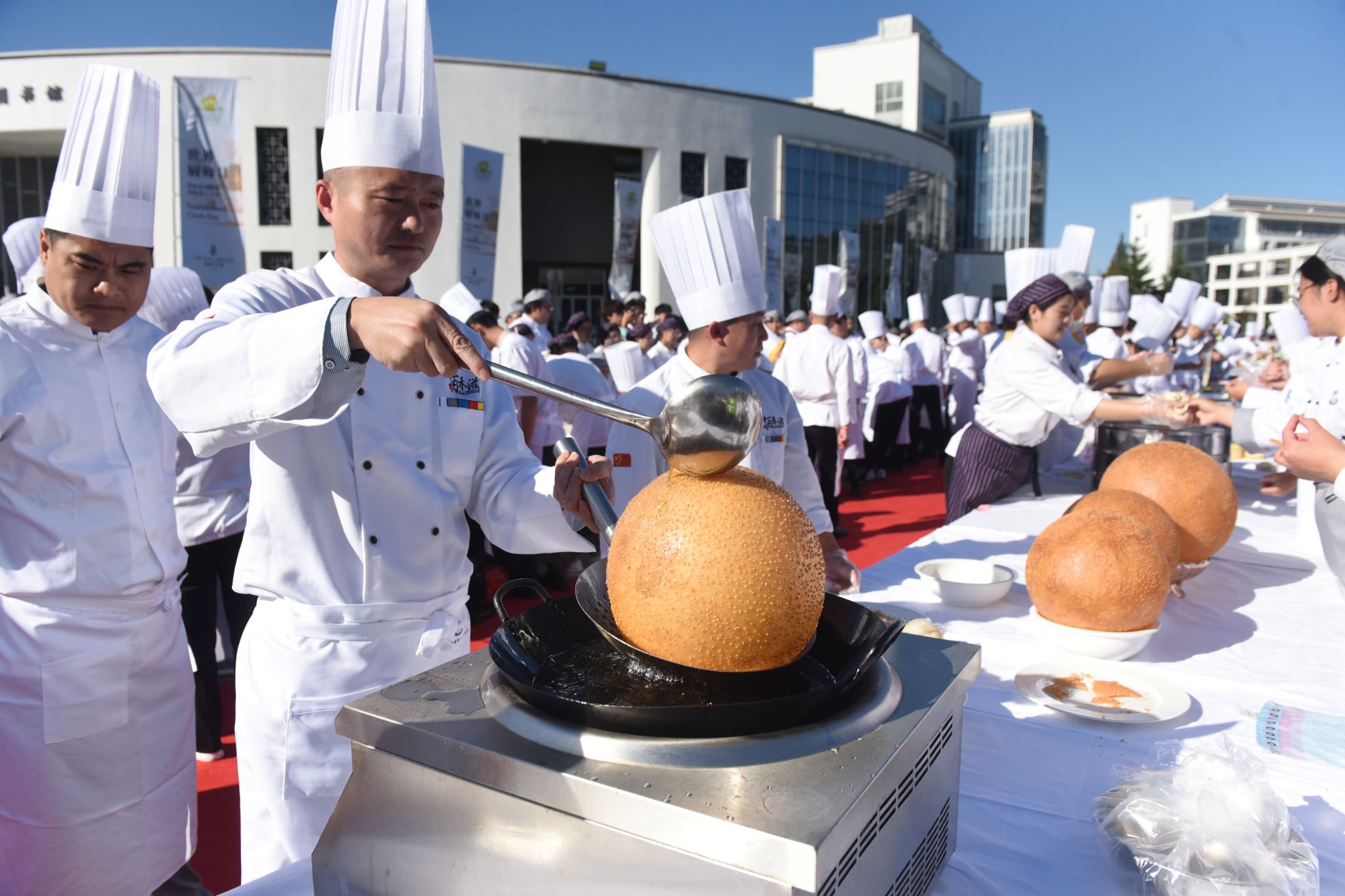 糖艺、面塑、巨无霸油条、气球上切肉丝、果蔬雕刻秀、灯笼萝卜……展示创新技艺和匠心传承。