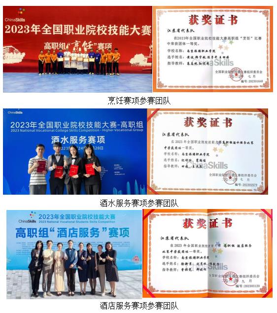 2023年5月至9月,由教育部等36个部委主办的2023年全国职业院校技能大赛在全国31个赛区举行,南京旅游职业学院派出的代表队分别在烹饪、酒水服务和酒店服务三个赛项中勇创佳绩,斩获三个国赛一等奖。
