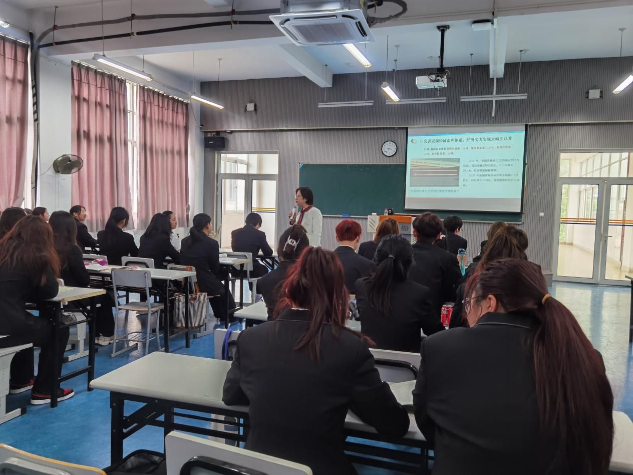 党委副书记、院长叶凌波以《深刻认识当前经济形势为全面建设社会主义现代化国家开好局起好步》为主题为22级导游1班、民宿管理与运营1班等班级讲授了形势与政策课。课上,叶凌波通过图片、案例等多种教学资源为同学们讲授了国家因时因势优化疫情防控工作,最大限度减少疫情对经济社会发展影响的一系列具体措施,介绍了当前中国经济发展的主要策略,并结合专业特点,引导同学们要深刻理解和贯彻中央经济工作会议精神,锤炼硬本领,解锁新技能,为全面建设社会主义现代化国家开好局起好步。