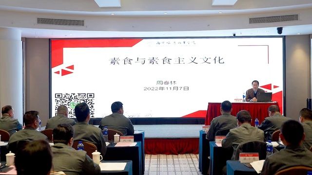 开班仪式后,学员们认真投入到学习中。南京旅游职业学院党委书记周春林以《素食与素食主义文化》为题开启了本期培训。