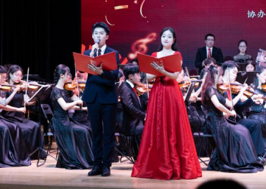 本次音乐会由中国药科大学交响乐团、南京旅游职业学院、江苏省戏剧学校的师生们共同出演。以中国共产党的100年光辉历程为主线,通过“建党伟业 开天辟地”“奠基立业 改天换地”“改革开放 翻天覆地”“筑梦前行 伟大复兴”四个篇章,生动展现党的奋斗历程和伟大成就,实现了理性的学习教育与感性的音乐聆听之间的完美联动。我院学生谢宇涵、杨诗雨朗诵的《悲怆的黎明》,讲述了一群青年学生为迎来新中国胜利的曙光而奉献出生命的故事,慷慨激昂的朗诵让现场观众身临其境。