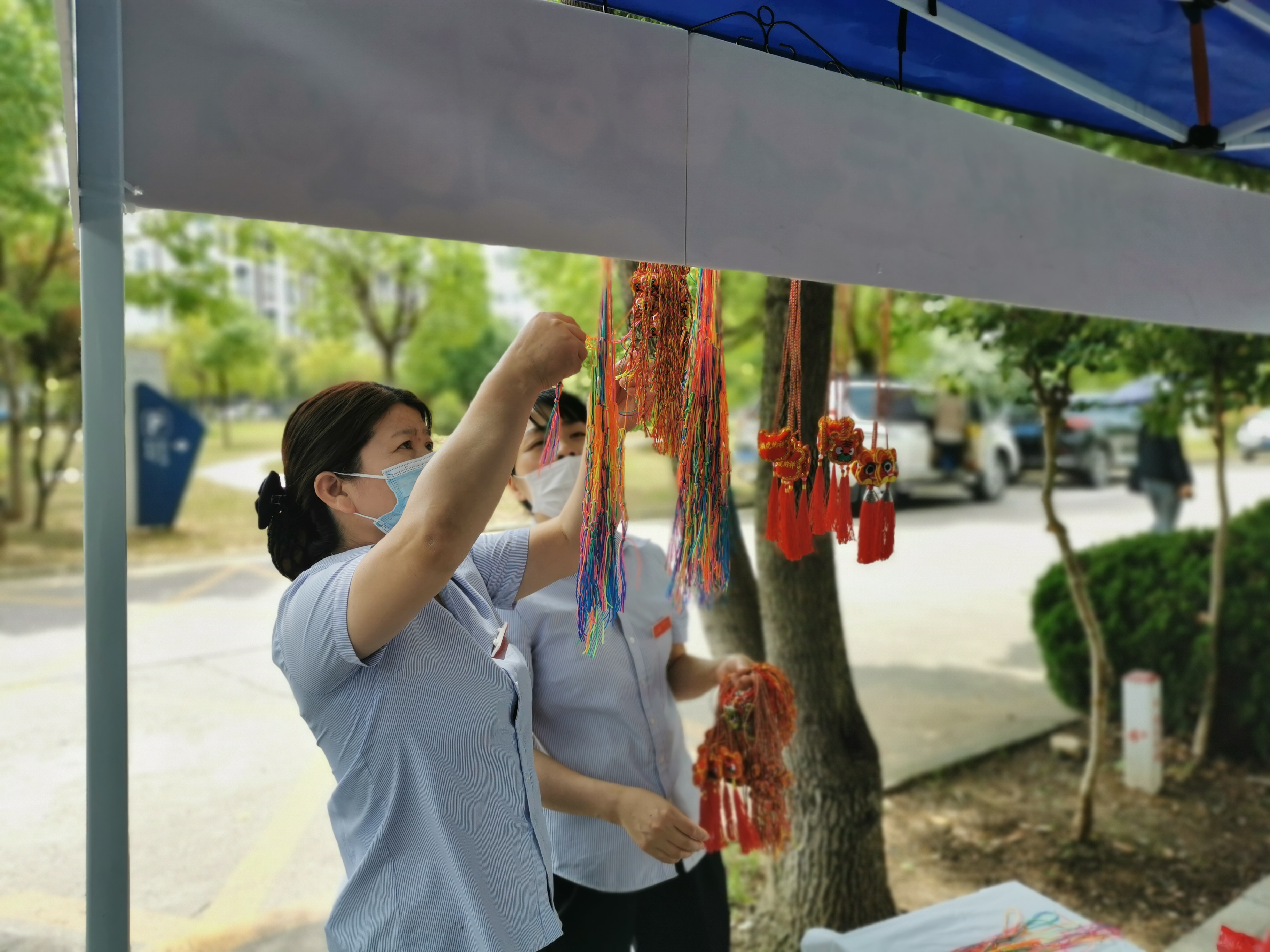 活动中,高校物业宿管站为师生们准备了粽叶、糯米、鸭蛋、彩绳等各类端午民俗物品,另外还提前煮好了大量各种口味的粽子供大家品尝。由于正值午饭时间,路过的师生纷纷驻足停留,参与到活动中来,和宿管阿姨一起包粽子、画鸭蛋、编彩绳,参与活动的同时,体验劳动的快乐。现场人声鼎沸、精彩纷呈,“师傅”们手把手教,“徒弟”们一招一式学得有模有样,共同沉浸在浓浓的端午文化氛围之中。
