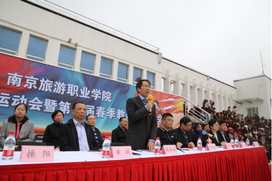 学院党委书记周春林宣布南京旅游职业学院第十一届田径运动会暨第六届春季教职工运动会开幕。