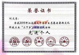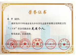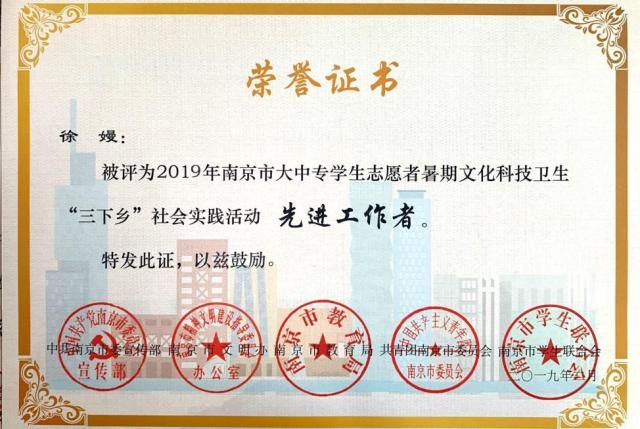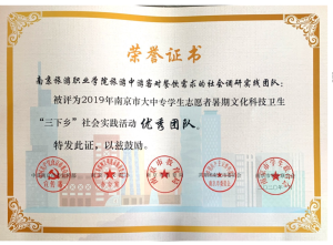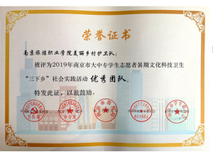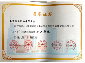 近日,在江苏省省委宣传部、省文明办、省教育厅、团省委、省学联联合组织开展的2019年江苏省大中专学生志愿者暑期文化科技卫生“三下乡”社会实践活动评选中,我院团队和个人荣获省级奖项3项和市级奖项9项,其中“印象南旅·走进空港观察团”荣获省级“优秀团队”、刘文清同学荣获省级“先进个人”、“石塘人家乡村旅游区旅游服务质量评价及其对游客满意度的影响”荣获省级“优秀调研报告”,我院团委荣获市级暑期社会实践活动“先进单位”,“美丽乡村护卫队”等3个团队荣获市级“优秀团队”,“旅游中游客对餐饮需求的社会调研实践团队”荣获市级“优秀调研报告”,徐嫚和龙宇等4人分别获得市级“先进工作者”和“先进个人”。