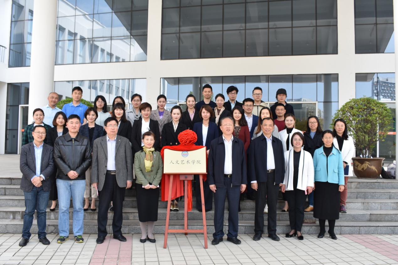 仪式上,黄斌宣读了人文艺术系更名为人文艺术学院的通知文件,王海平与田寅生共同为人文艺术学院揭牌。