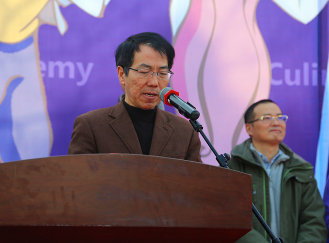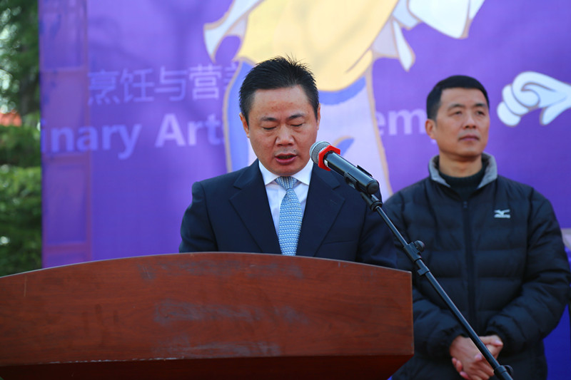烹饪与营养学院副院长吕新河致欢迎词,他向一直以来关心烹饪与营养学院建设与发展的学校领导和各职能部门、各院系,以及企业领导、媒体记者、社会各界人士致以衷心的感谢。