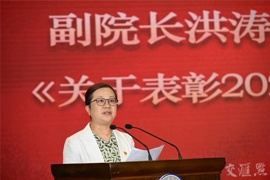 副院长洪涛宣读了《关于表彰2024年度优秀毕业生的决定》,全体与会院领导为获奖学生代表颁发荣誉证书。院领导为毕业生代表颁发毕业证书,为校友联络员颁发聘书并合影留念。
