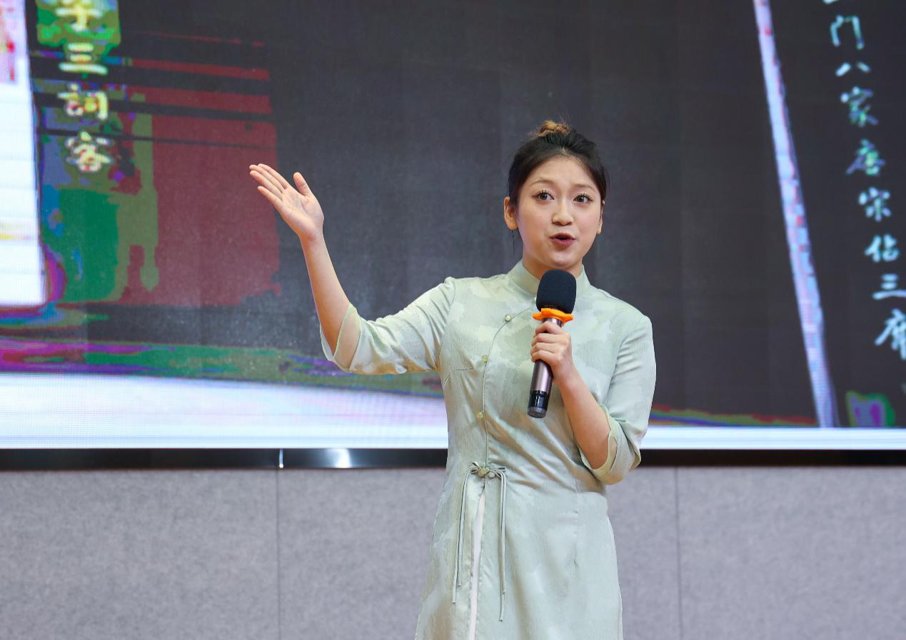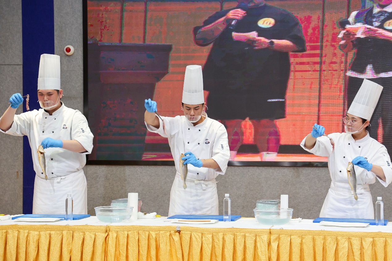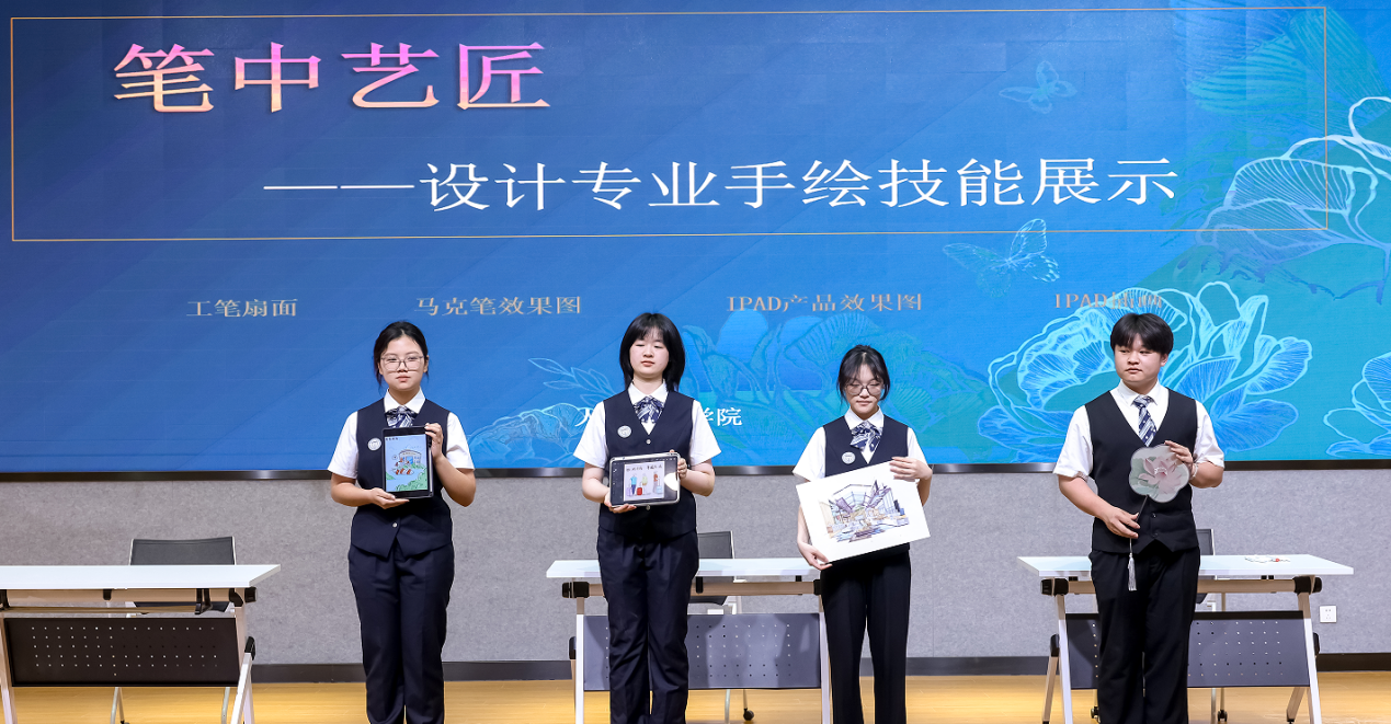 二级学院展示参赛成果环节,酒店管理学院的全国职业院校技能大赛金牌团队现场演绎了节目《侍酒技艺展风采 乐观坚韧绽芳华》,带领观众体验优雅的侍酒、创意的调酒和精准的盲品环节;旅游管理学院的吴凌帆声情并茂地讲解了《三苏祠》,让观众对三苏祠有了更加深刻的了解;烹饪与营养学院带来了节目《数智赋能技艺 技能点亮未来》,烹饪与营养学院的学生通过整鱼脱骨和拉面制作两项经典的传统技艺展示,彰显了博大精深的烹饪文化;旅游外语学院的学生通过外语演讲节目《伟大出自平凡 平凡铸就伟大》,为观众呈现了一场精彩的多语种盛宴;人文艺术学院的四位同学现场绘制了工笔扇面、马克笔效果图、Pad产品效果图和校园插画等作品,展现艺术设计专业学生优秀的人文素养和手绘专业技能。