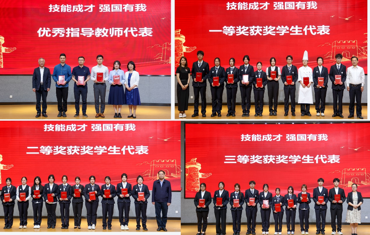 学院党委委员、副院长洪涛宣读《关于表彰南京旅游职业学院2024年江苏省职业院校技能大赛获奖学生和优秀指导教师的决定》《关于表彰南京旅游职业学院第十三届“成才杯”学生职业技能大赛获奖部门的决定》,随后,与会领导为获奖师生代表和获奖单位颁奖。