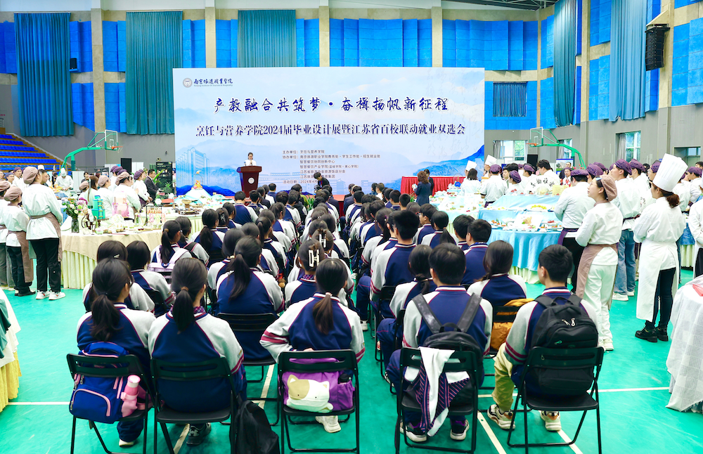 为抢抓毕业生就业关键期,搭建优质人才供需平台,保证2024届毕业生高质量就业,烹饪与营养学院让设计展成为可视化平台,邀请了多家知名餐饮企业代表来校参观并担任评委,同时为企业搭建招聘专区,现场60余家企业为毕业生提供近千个就业岗位。南京旅游职业学院烹饪与营养学院党总支书记陈瑶说:“借助校企合作的良好模式,我们在今年双选会上能够做到约1:3的人岗比,企业对学院毕业生的认可度也比较好。”让一道道生动亮眼的美食成为同学们进入行业的敲门砖,让企业亲眼见证学生手上的真功夫,真真切切打破供需双方的壁垒。