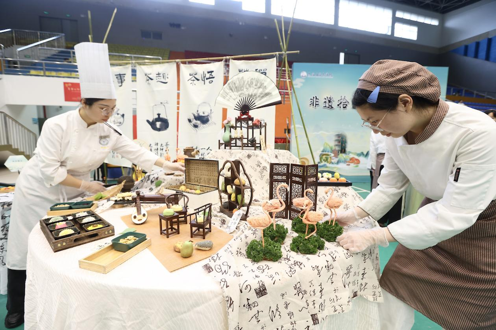 四季时令菜肴、文化主题宴席、国风甜品组合、中西饮品荟萃、轻食菜品研究、西式制法创新、智能器具应用……一块块肥嫩多汁的牛肉竟是草莓酱和牛奶的组合,一座爬满青苔的假山居然是黑森林蛋糕和抹茶粉的碰撞,一条蜿蜒的运河连起江南水乡的人间烟火……是厨艺与创意的结合,也是视觉与味蕾的盛宴。