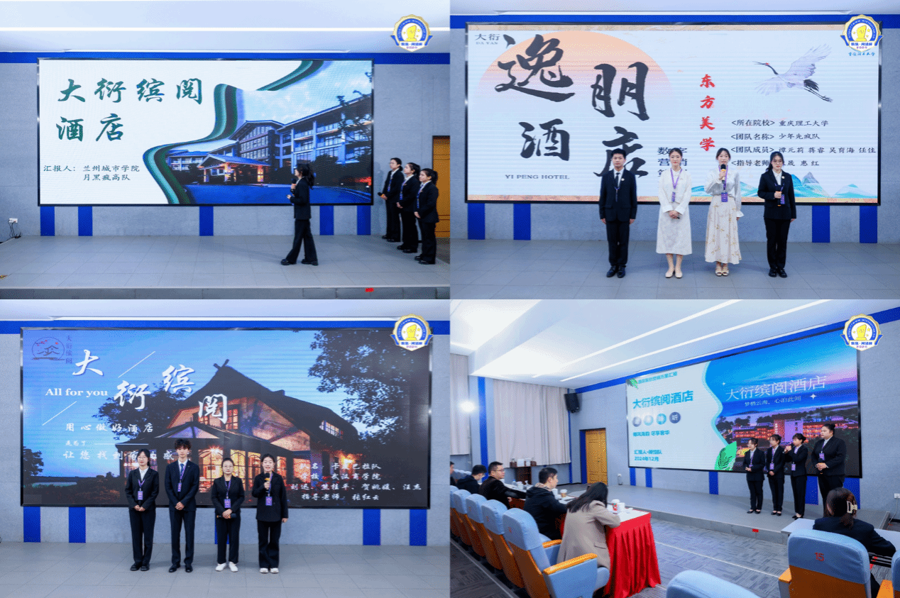 本次现场决赛为团体赛,每支参赛队伍由2-4名参赛选手和1-2名指导教师组成。大赛现场气氛热烈,各参赛队伍要基于竞赛平台提供的酒店背景说明及三套 PMS数据,进行酒店客房经营数据分析、酒店在线商城搭建与模拟运营的方案讲解,提出了富有创意和前瞻性的营销策略,充分展示了团队在数字营销领域的创新思维与实践能力,展现了新时代酒店管理专业学生的专业素养与创新精神。