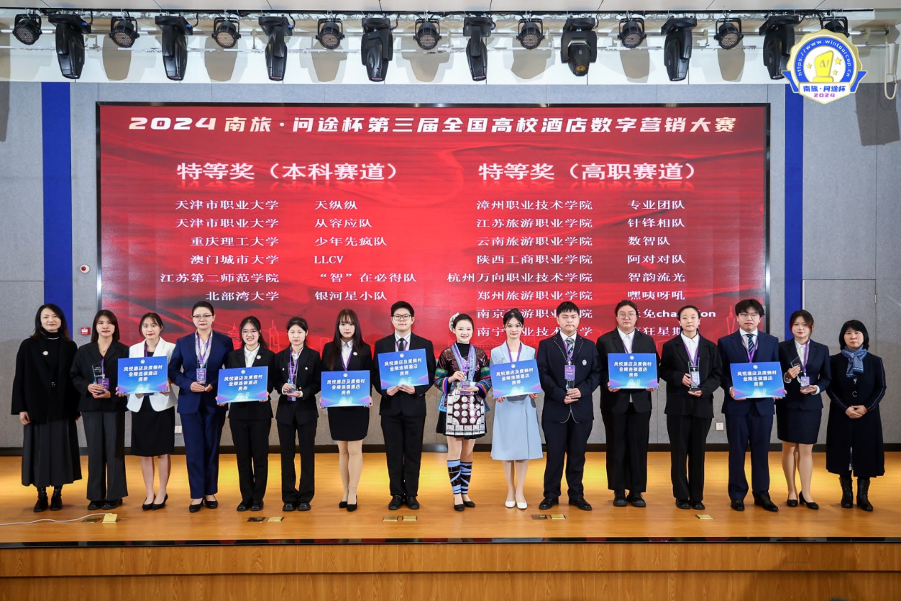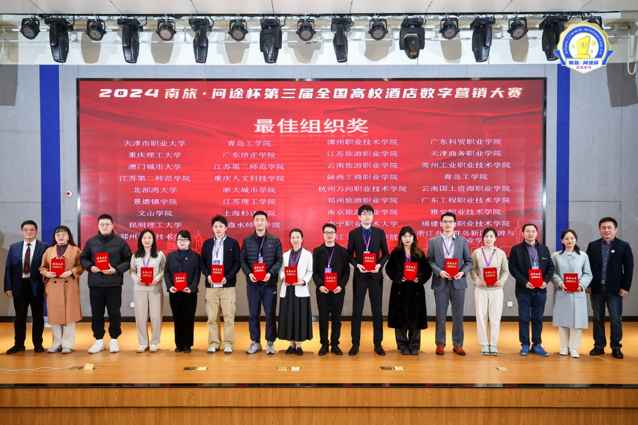 12月4日至12月7日,2024“南旅•问途杯”第三届全国高校酒店数字营销大赛决赛在南京旅游职业学院成功举办。本次大赛以“拥抱产业数字化变革,智创未来、成就自我”为主题,由中国旅游饭店业协会人力资源分会、南京旅游职业学院、广州市问途信息技术有限公司主办,来自全国55所院校、69支本科及高职队伍的两百余名师生齐聚一堂,共同比拼。南京旅游职业学院获得最佳组织奖,由酒店管理学院史晓岚老师指导的未免champion团队获得特等奖及单项奖最佳文案奖。