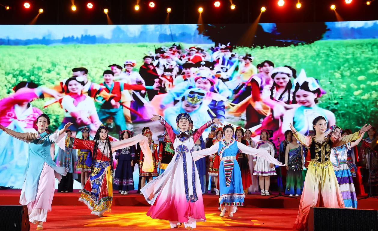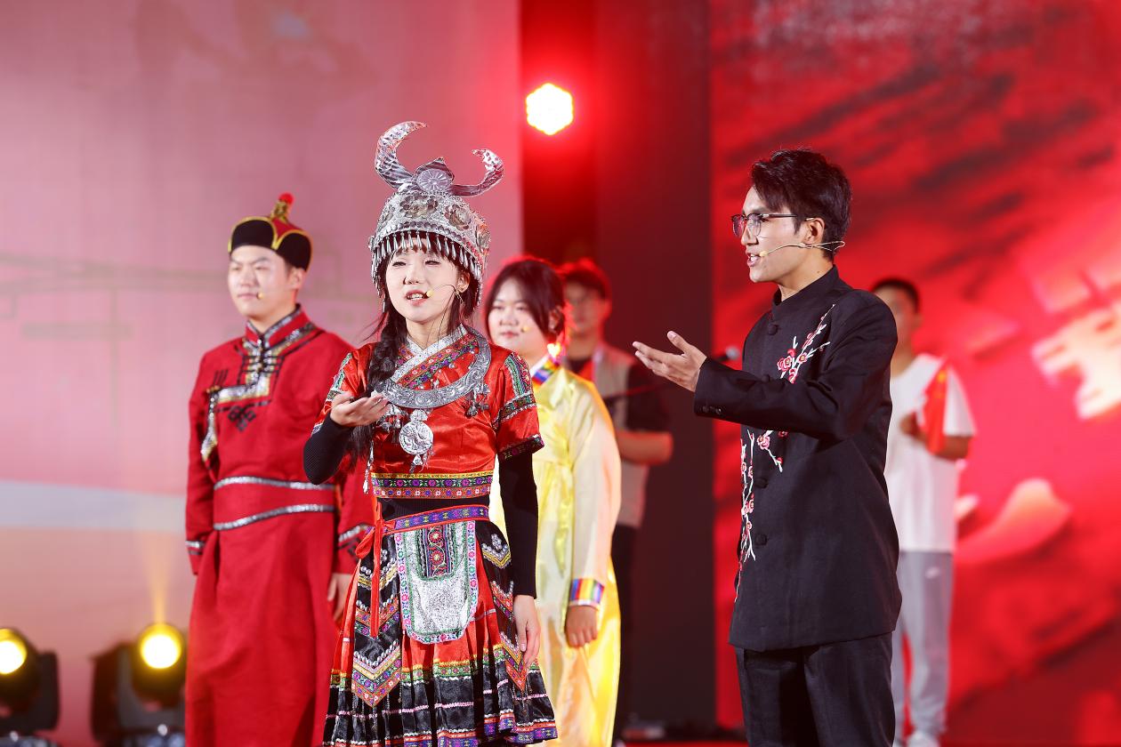 合唱与舞蹈《我爱你中国》中,师生饱含激情唱响对祖国深沉的爱与无尽的祝福,激发了在场观众心中的爱国热情,将整个演出推向了高潮。民族歌舞《爱我中华》、情景朗诵《民族团结荣耀中国》、《我在一颗石榴里看见了我的祖国》,讴歌了浓浓的民族团结情谊,充分展示了各民族亲如一家、血脉相连的团结之情。晚会在尾声合唱《和光同尘》的旋律中缓缓落下帷幕。