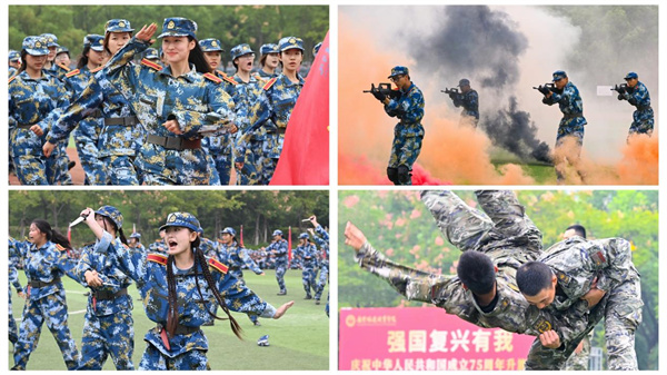 在雄壮嘹亮的国歌声中,军训成果汇报暨表彰大会正式拉开帷幕。2600多名新生组成41支连队。汇报表演分为分列式、男生军体拳、女生匕首操、男生战术演示、教官摔擒演示。精彩的汇报表演赢得现场观众阵阵喝彩,展现了南旅学子顽强拼搏、奋勇向前的精神风貌。