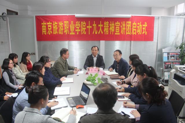为深入学习宣传贯彻党的十九大精神,根据《中共南京旅游职业学院委员会学习宣传贯彻党的十九大精神通知》要求,由基础部思政教研室全体专、兼职教师组成的南京旅游职业学院十九大精神宣讲团,于11月22日在图书馆报告厅举行了首次十九大精神宣讲报告会。...