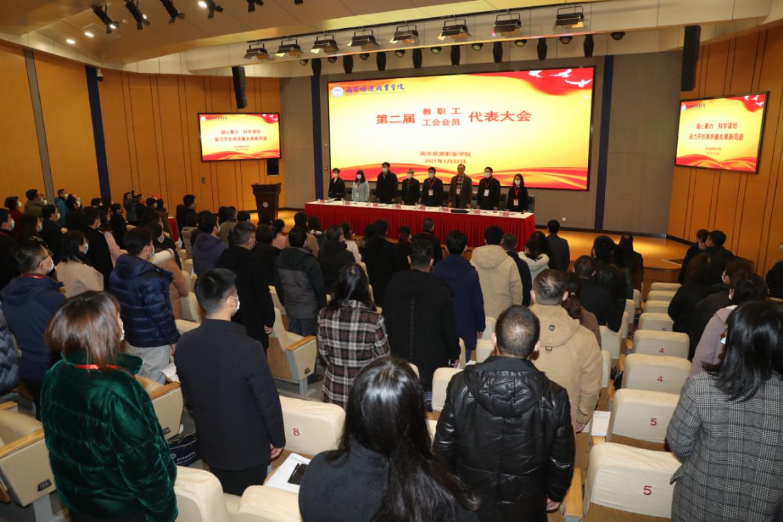 1月22日,学院第二届教职工代表大会暨工会会员代表大会在图书馆报告厅隆重举行。江苏省文旅厅工会主席杨敬久、100余名代表、学院各部门的负责人,部分民主党派和高级职称教师代表以及特邀代表列席会议。大会由院党委副书记、副院长、大会执行主席黄斌主持。