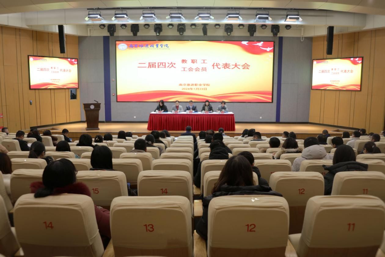 1月23日,南京旅游职业学院二届四次教职工代表暨工会会员代表大会顺利召开,学院各部门负责人,部分民主党派和高级职称教师代表以及特邀代表参加会议。