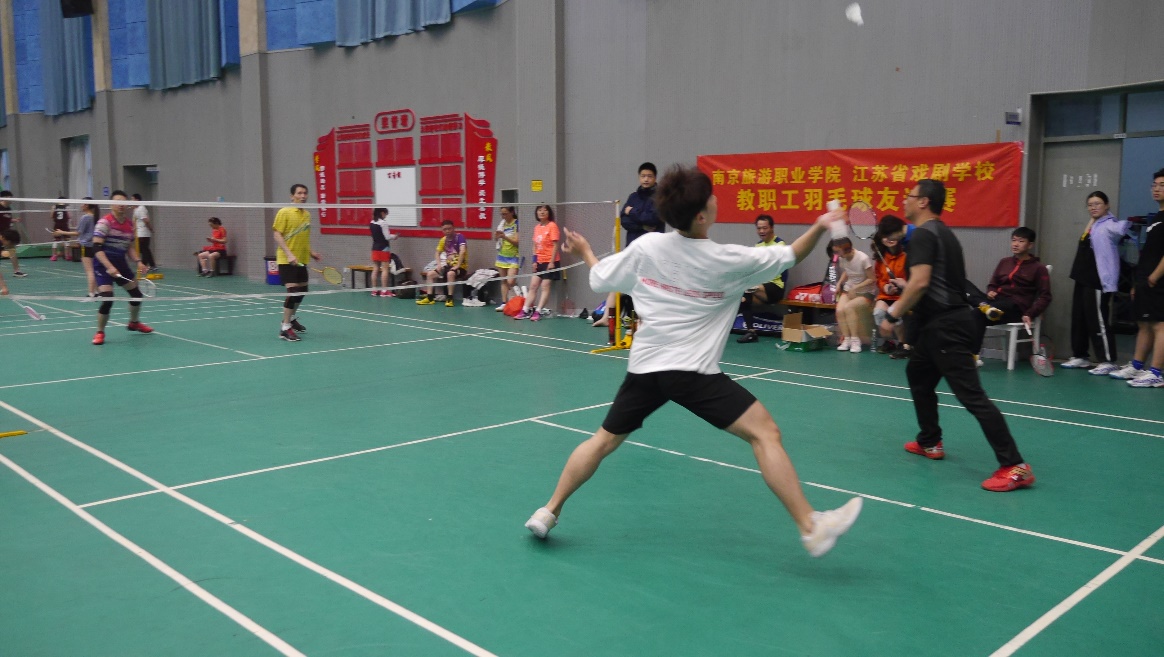 5月12日下午,江苏省戏剧学校与我院共同举办了一场教职工羽毛球友谊赛。