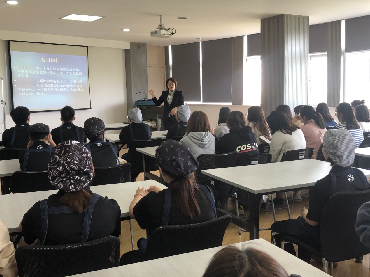 10月9日下午,在国际交流合作处四楼会议室召开2020赴日研修宣讲会。宣讲会由国际交流合作处樊平处长主持。本次宣讲会针对的是183级旅游日语专业、烹饪院日料班的学生。