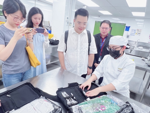 在实践教学环节,实地考察了新加坡SHATEC烹饪工作坊,了解厨房安全和食品卫生管理情况以及新加坡的饮食文化,在老师的指导下制作了新加坡代表性美食,我方也介绍了中国饮食文化。代表团还深入课堂,观摩了SHATEC老师的《酒店服务礼仪》课程,就教学方法和教学评价进行了研讨。最有收获的是职场成功辅助教导(Coaching for Workplace Success),代表团的各位老师觉得通过课程,学到了很多实用的技巧和策略,帮助我们提高自我认知、增强职业能力、提供职业指导等,培训课程结束还进行了3个小时的考试才予以结业,SHATEC这种严谨认真的态度也让各位老师受益匪浅。