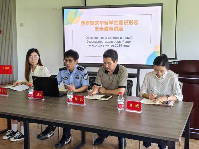 为加强对来华留学生的教育管理,切实提升他们在华学习期间的安全意识、身心健康及整体安全保障,9月27日下午,国际交流合作处特邀南京市江宁公安分局出入境管理大队王晨星警官,为2024级俄罗斯来华留学生举办了意识形态安全教育讲座。国际交流合作处处长颜忠、来华留学生项目负责人卫威、俄罗斯留学生辅导员侯筱钰以及所有俄罗斯留学生出席了本次活动。
