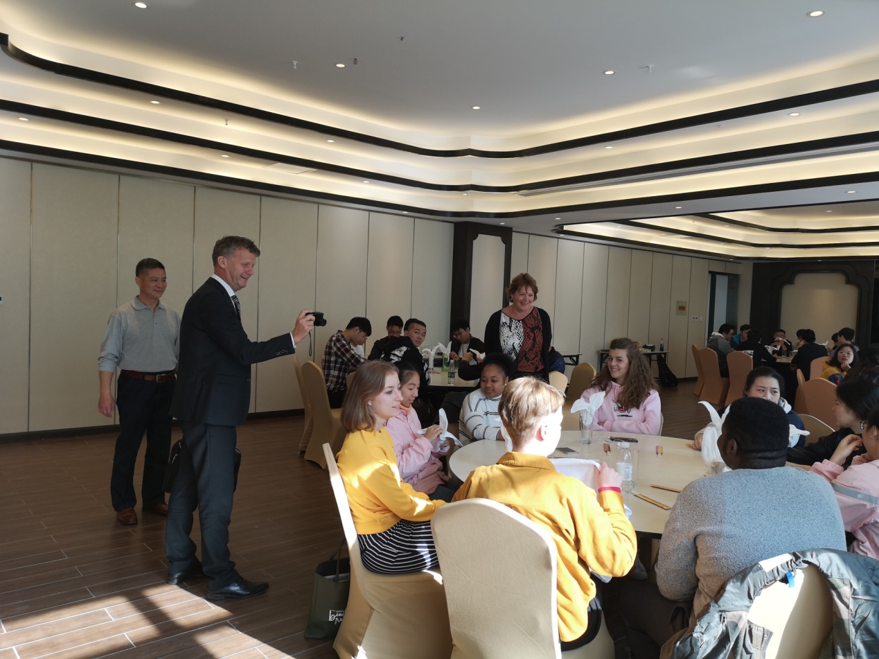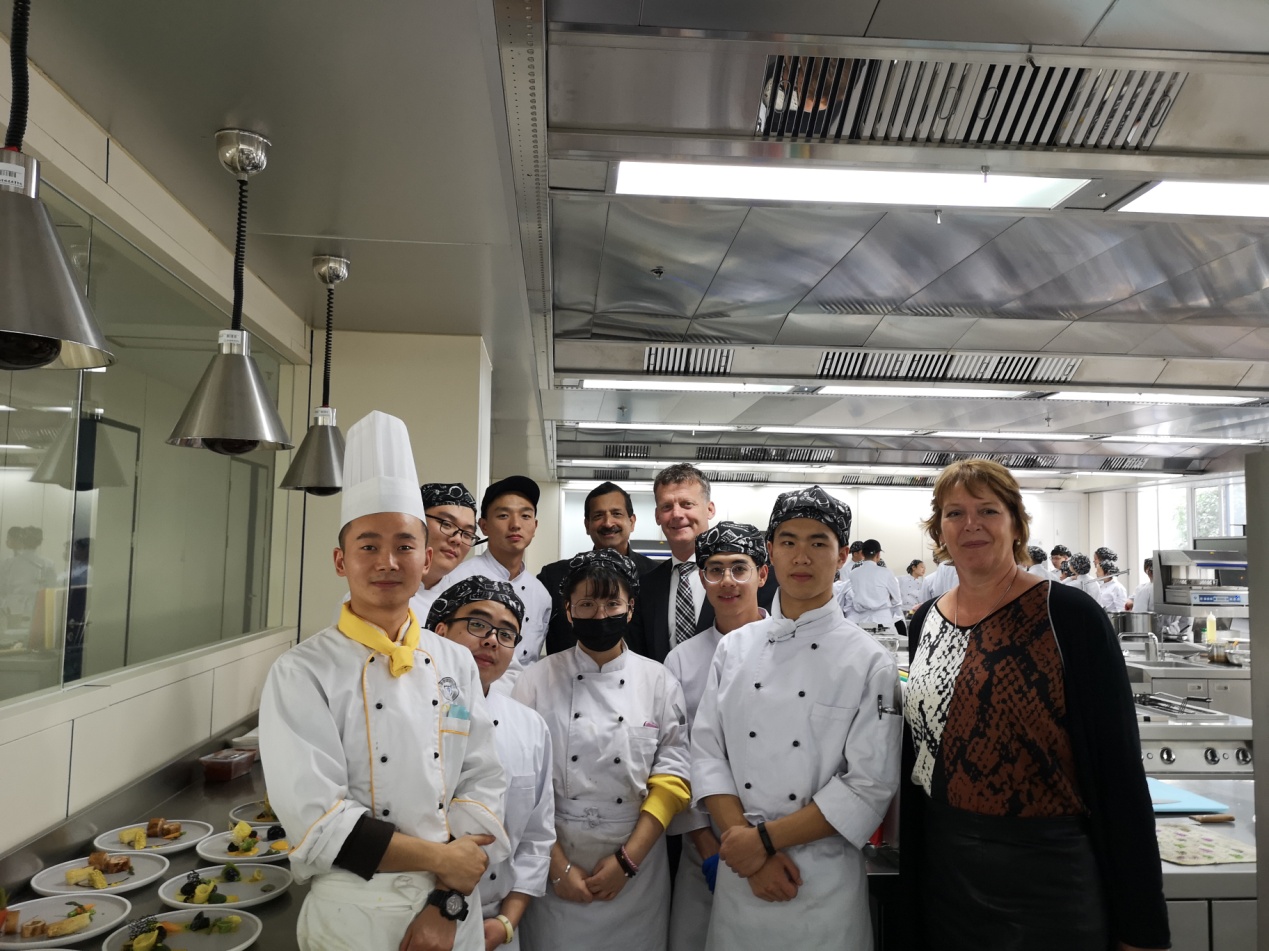 Mr.Bont先生一行会前参观了我校烹饪工艺与营养学院的烹饪实训教室和酒店博物馆。会后,Mr.Bont与我校全体参加面试同学合影。Mr.Bont稍后和正在我校交换学习的荷兰蒙德里安酒店管理学院5名交换生碰面,了解了他们在中国学习和实习情况。