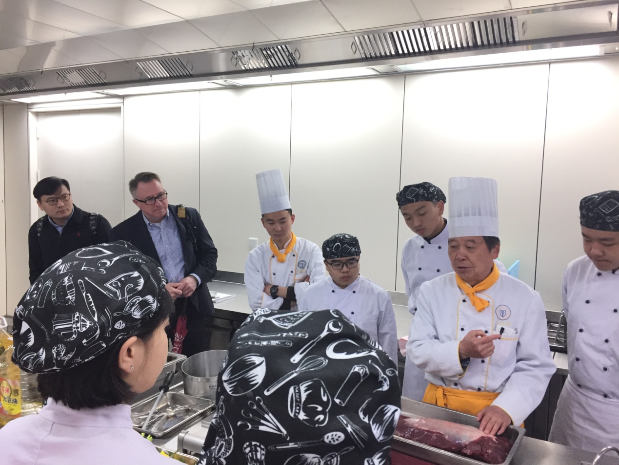 会后,樊处长带着Dr. Chuck校长一行参观了我校新改造的厨房和正在建设的酒店博物馆与烹饪博物馆。在参观过程中,Chuck校长在我校酒店博物馆周馆长展出了《世界知名酒店建筑》一书中找到了文森斯大学当地著名的酒店,Chuck校长笑说,真是不虚此行。