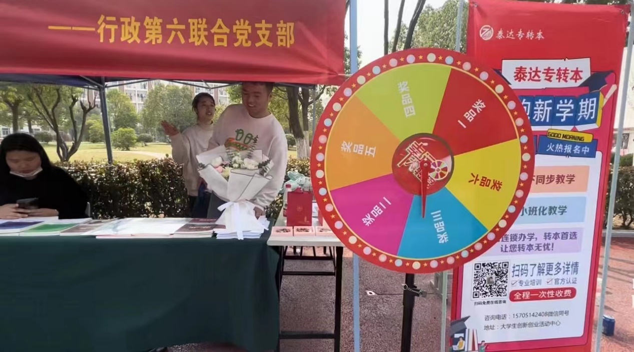 继续教育学院(培训中心)联合泰达专转本培训机构为学生开展专转本政策宣讲。现场工作人员向学生仔细介绍专转本的培训课程、教学安排、考试政策以及学习技巧等事项,让有学历提升意愿的学生能够全面准确掌握相关转本政策,帮助我院学生实现学历提升。专转本资讯活动现场还开展了幸运大转盘、远距离套圈等娱乐活动,吸引了不少学生前来交流互动。