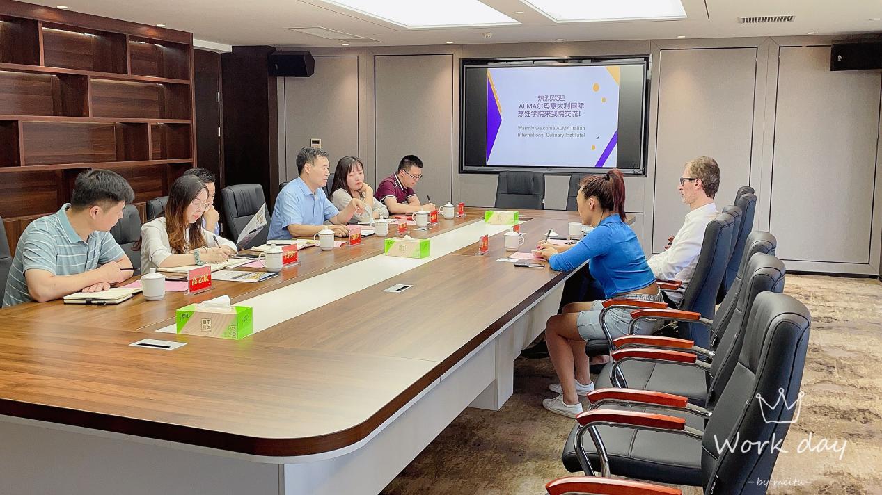 会议由颜忠处长主持,吕新河院长与Guido Mologni先生分别介绍了两校烹饪学院的基本情况,并就双方未来合作交流的形式进行了深入探讨。意大利ALMA国际烹饪学院是世界知名学院,此前依托意大利对外贸易委员会参与了在我校组织的“意大利烹饪教育项目”,活动反响强烈。该校本次专程到访我校寻求深度合作。会上双方就师资培训、学生联合培养、引入烹饪专业国际认证体系、双方共同建立国际学院等方面进行了深度洽谈。
