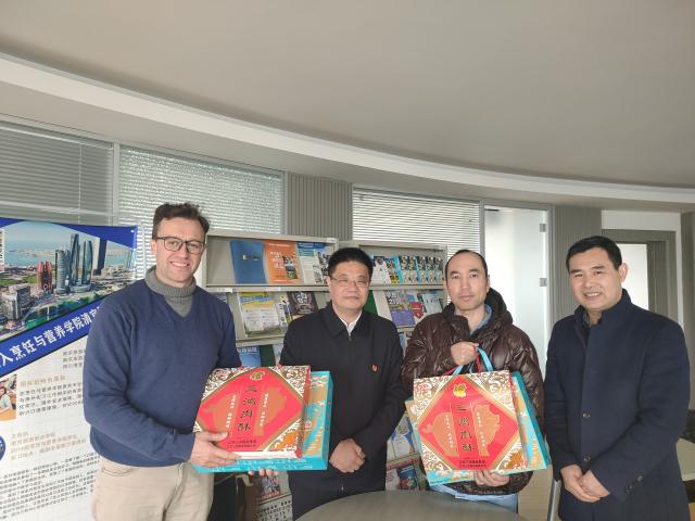 在新春佳节来临之际,1月17日,学院党委副书记、院长叶凌波,国际交流合作处处长颜忠代表学校亲切慰问外籍教师,向外籍教师致以节日的问候。