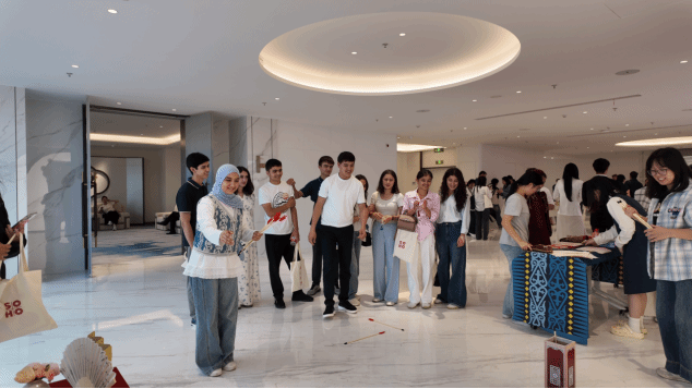 活动现场特别设置了投壶、香囊制作、雕版拓印等非遗体验环节。我院中亚留学生表现出浓厚兴趣,积极参与各项实践,在亲身操作中深切感知中华优秀传统文化的博大精深。这类沉浸式互动不仅拓展了交流的形式,更以文化共享悄然消融语言与地域的隔阂,真正实现了“以手传心、以艺通心”,彰显出民心相通在推动区域合作中的深远意义。