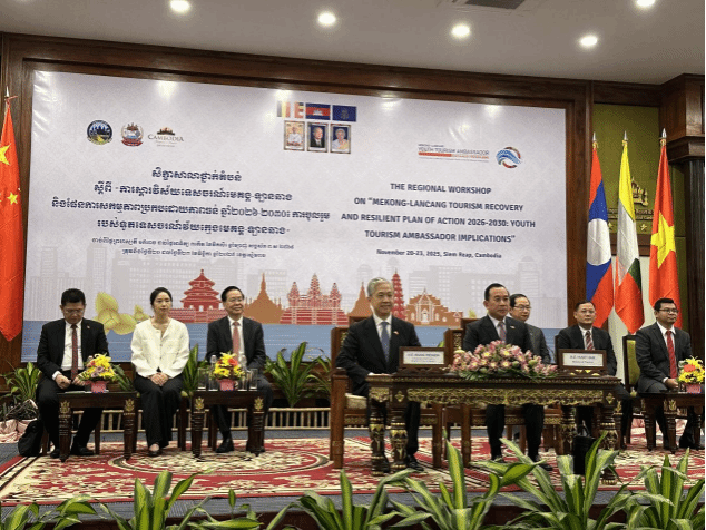 本次研讨会是澜沧江-湄公河合作(MLC)框架下的重要区域文旅交流活动,旨在凝聚澜湄六国共识,探讨区域旅游可持续复苏路径,尤其凸显青年群体在文旅产业创新发展中的核心作用。会议期间,中国驻柬埔寨大使汪文斌亲临开幕式并致辞,柬埔寨王国旅游部大臣 HOUT Hak、暹粒省省长PRAK Sophorn、越南文化体育与旅游部、缅甸饭店和旅游部、老挝新闻文化旅游部等多国政要、旅游部门负责人及旅游专业院校代表齐聚一堂,分享共商区域内文旅未来合作发展。