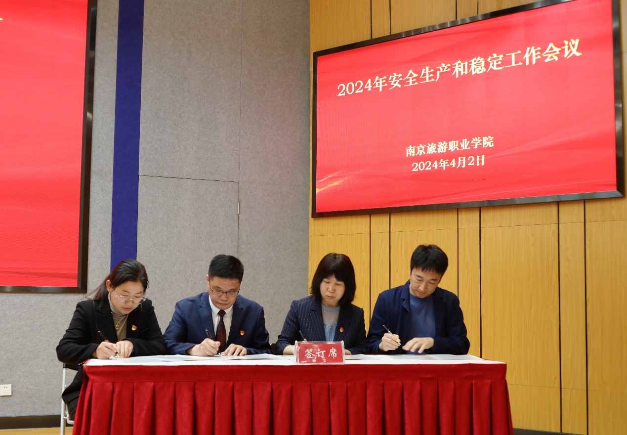 会上,党委书记叶凌波,党委副书记、院长操阳与人文艺术学院、后勤管理处、党委保卫部(保卫处)、资产经营有限公司等单位党政负责同志代表签订《2024年安全稳定工作责任书》。