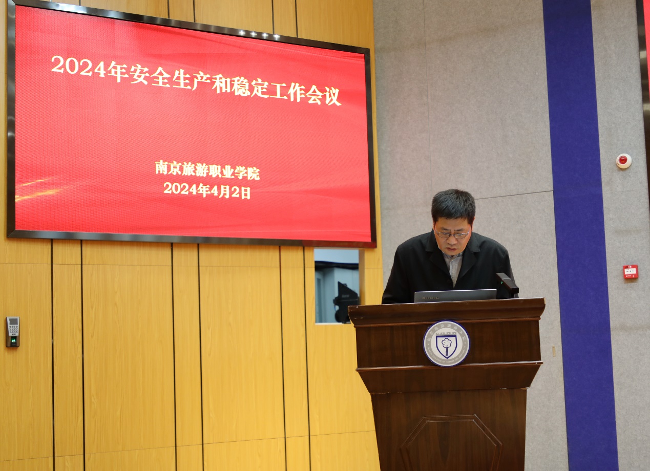 为进一步提升校园安全管理水平,压实安全生产责任,建设高质量平安校园,4月2日上午,我院在图书馆报告厅召开2024年安全生产和稳定工作会议,党委领导班子成员,全体中层干部,资产经营有限公司、校办企业负责同志参加会议。会议由党委副书记、院长操阳主持。