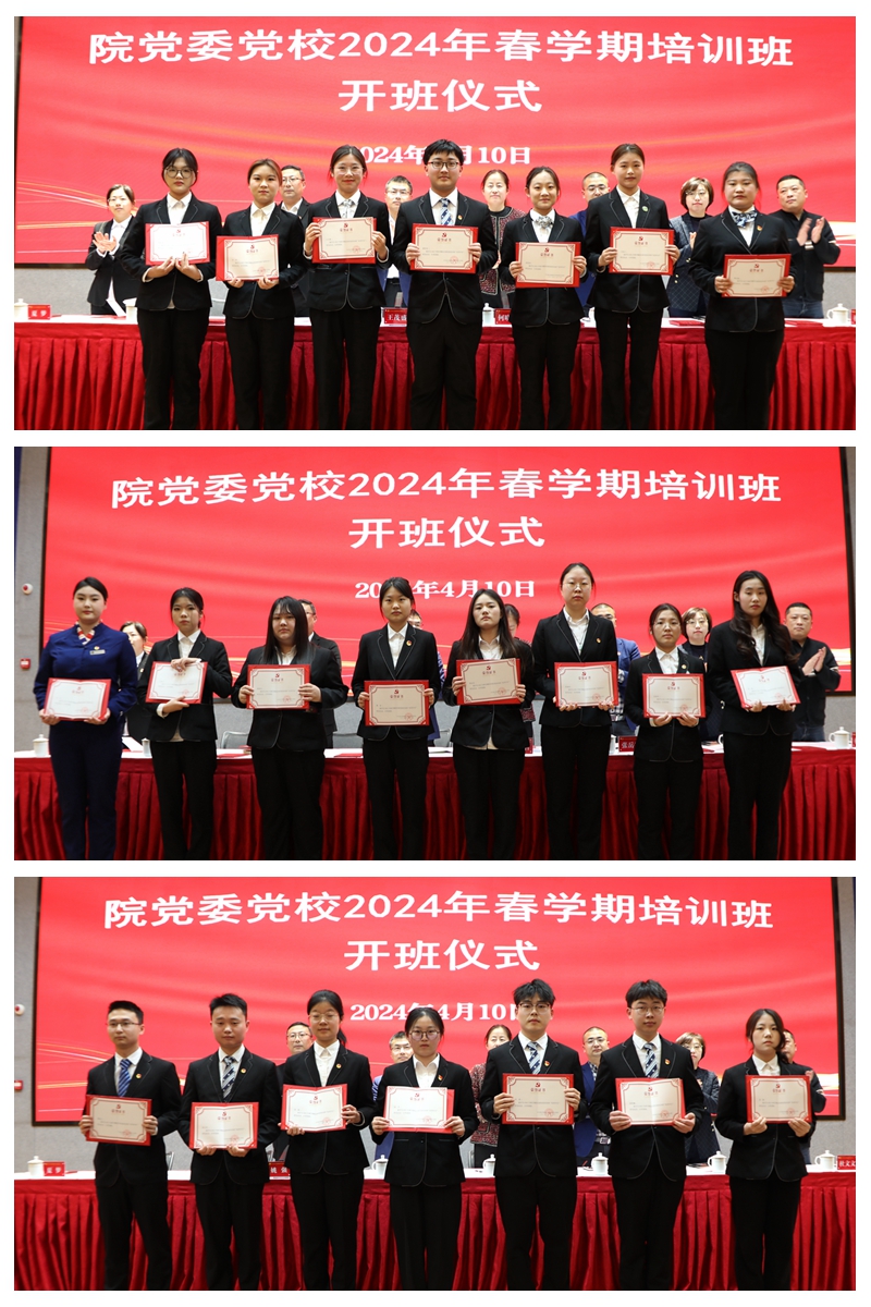 姚强宣读了《关于准予林露等70名院党委党校培训班学员结业的决定》,与会领导共同为2023年秋学期院党委党校优秀学员颁奖。