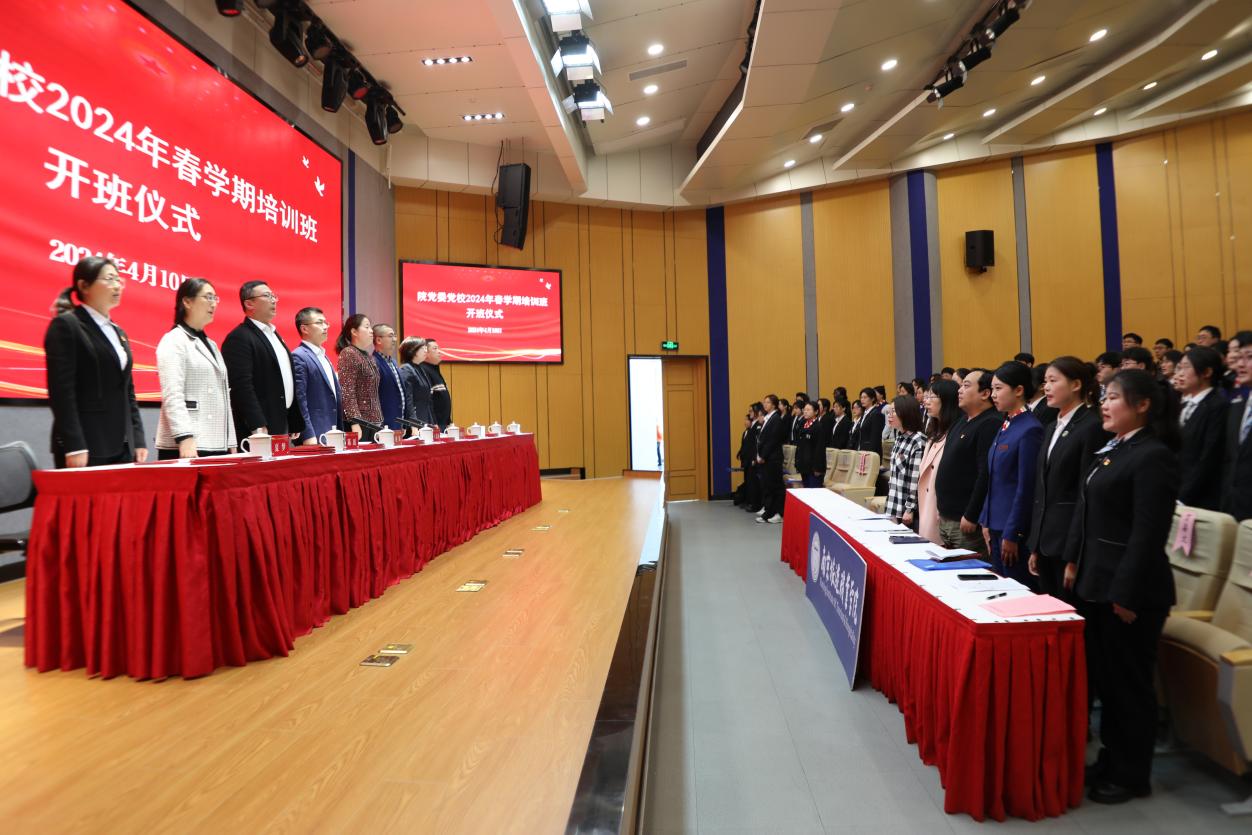 4月10日下午,院党委党校2024年春学期培训班开班仪式在图书馆报告厅举行,党委委员、组织人事处处长、党委党校副校长王茂盛,党委委员、党委宣传部部长、党委党校副校长何晓岩,党委学工部部长、党委党校副校长姚强,各二级学院党组织负责人、组织员及全体培训班学员参加,开班仪式由何晓岩主持。
