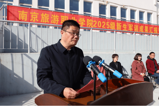 11月28日上午,学院隆重举行2025级新生军训成果汇报暨表彰大会。党委书记叶凌波,党委副书记朱琰,党委委员、副院长张骏等院领导,承训部队领导,二级学院负责人,全体军训教官,2025级辅导员及全体新生共同参加了本次大会。大会由学生工作处处长姚强主持。
