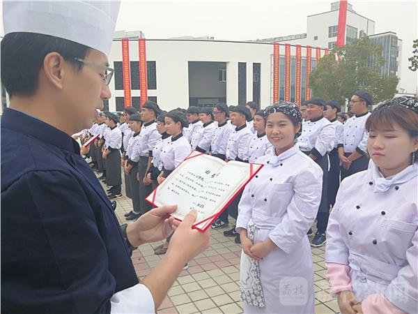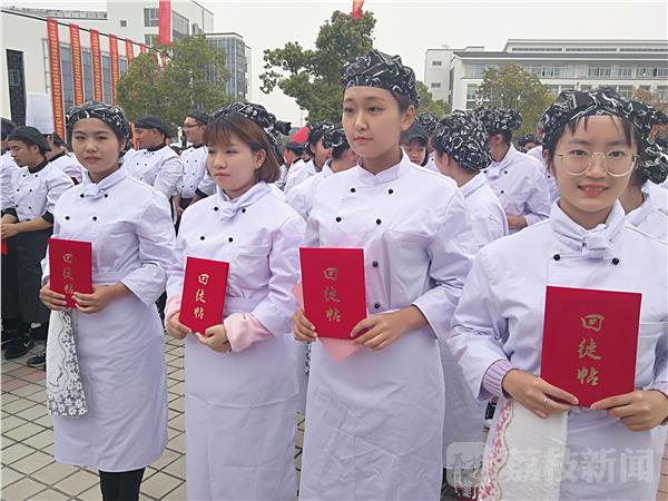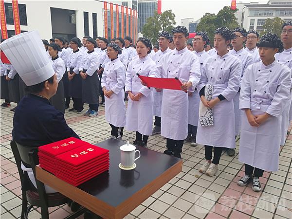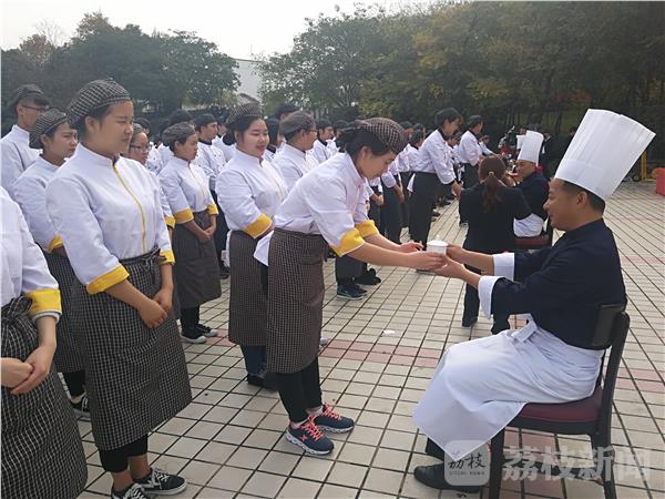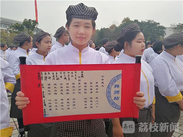 拜师仪式现场,首先全体新生跟读拜师贴。“虽分师徒,谊同父子,对于师门,当知恭敬,身受训诲,情出本心,绝无反悔……”今天的仪式保持了诸多传统文化元素,学生们向老师行礼,并敬茶,老师们则回礼,一一赠送回徒贴。此前,师生们经过双向选择,分中餐烹饪工艺与营养、西餐工艺、中西面点工艺、食品营养4个专业方向分别结对拜师,每一名新生都有自己的“师傅”。